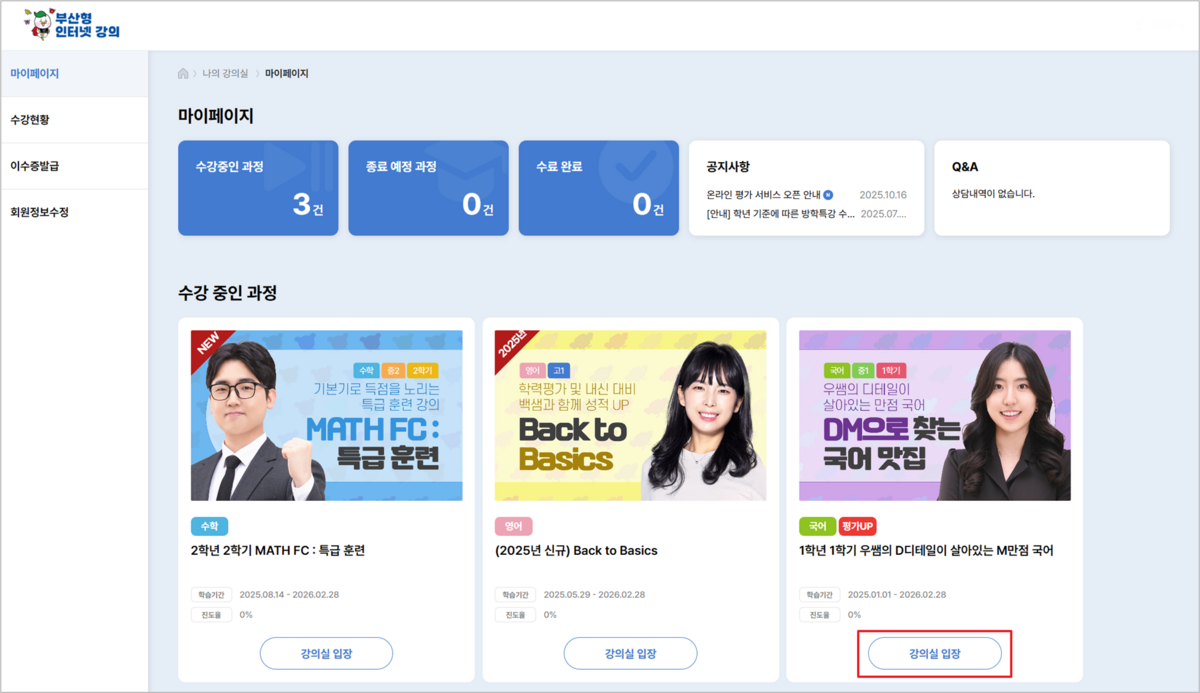 부산형인터넷강의는 앞으로도 더 나은 학습 환경을 제공하기 위해 지속적으로 서비스 개선을 이어가겠습니다.